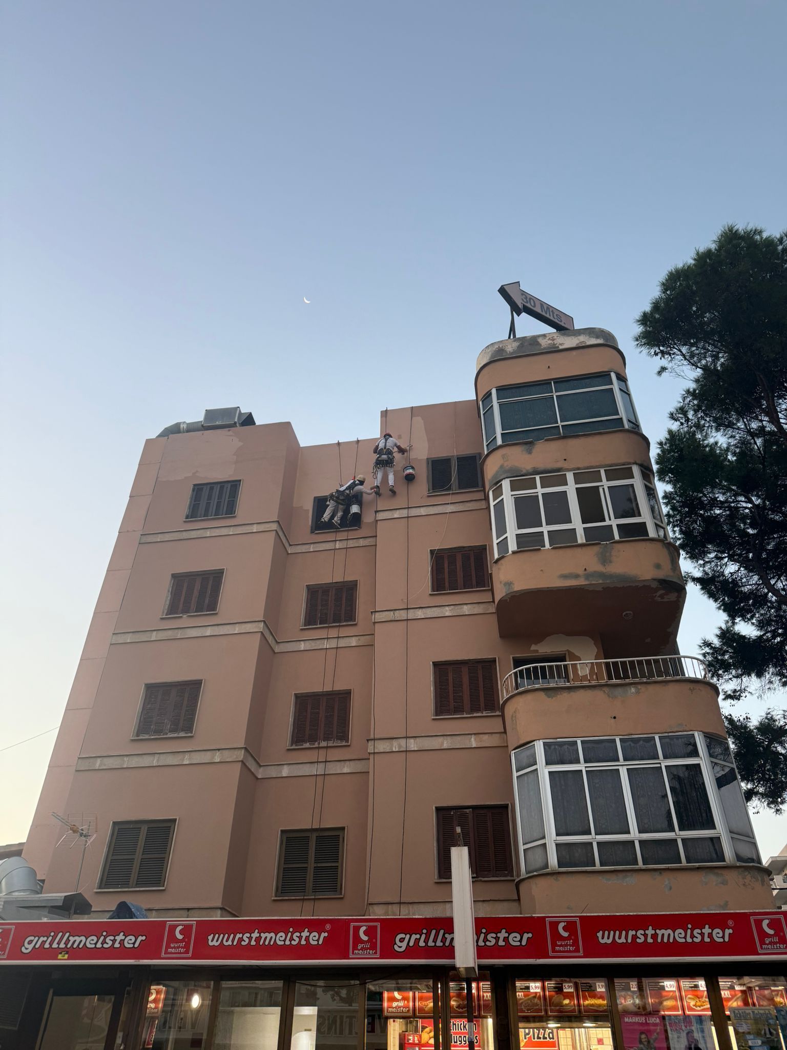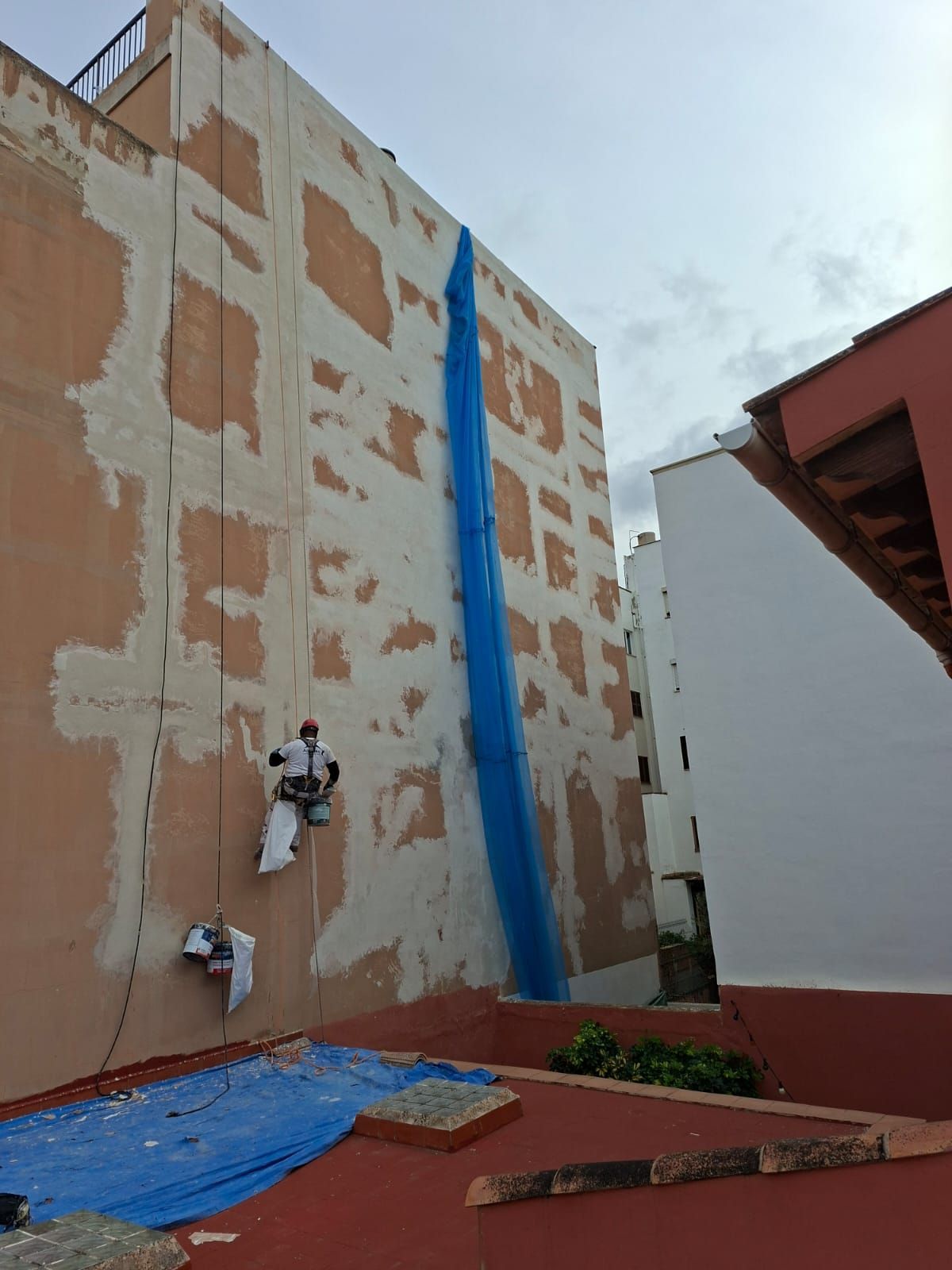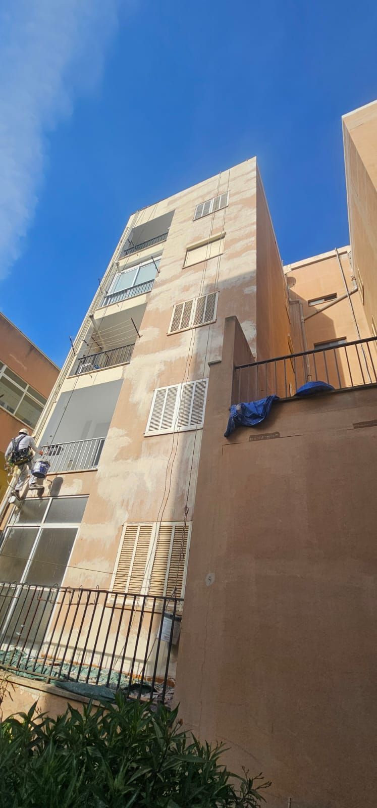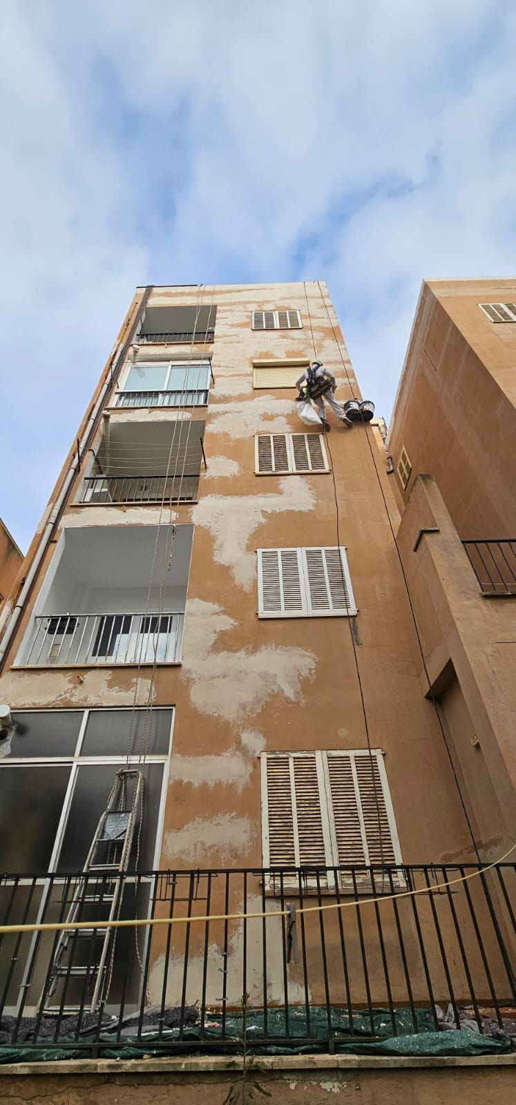 Trabajos verticales. Trabajos en Altura. Rehabilitación y restauración de Fachadas. Rehabilitación de patios de luces. Reparación de pilares. Impermeabilizaciones. Alquiler de Andamios en Palma de Mallorca.