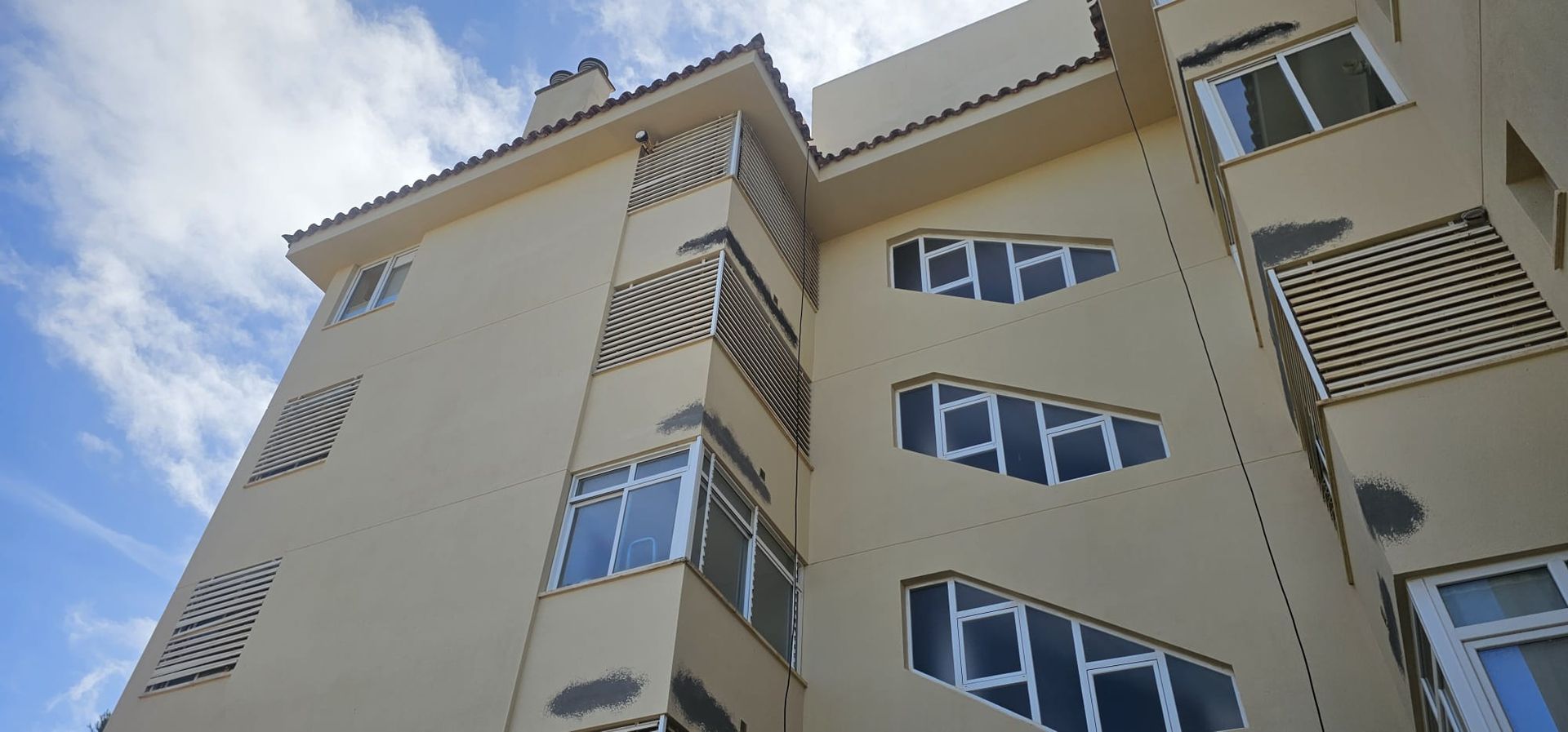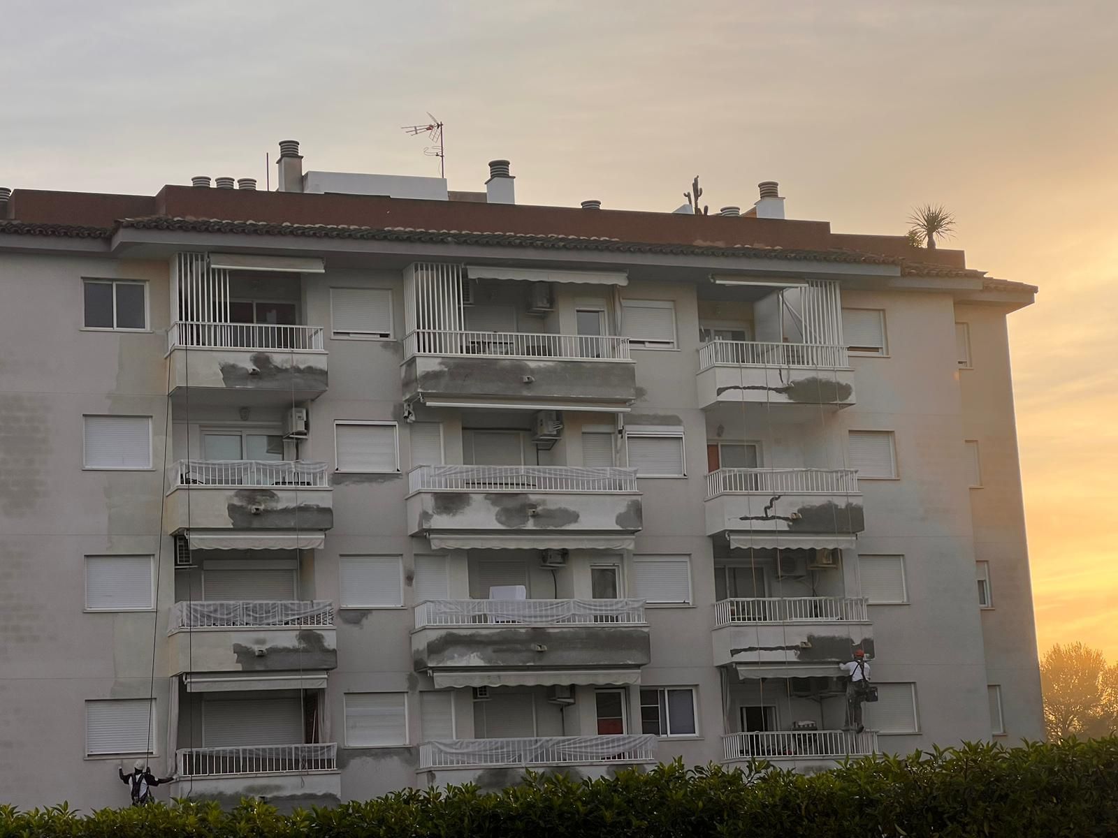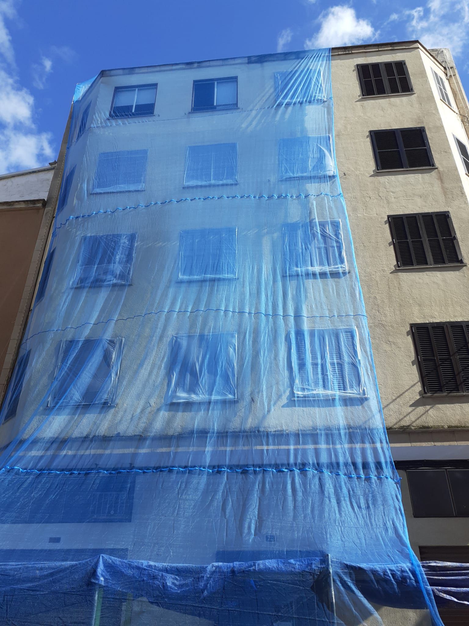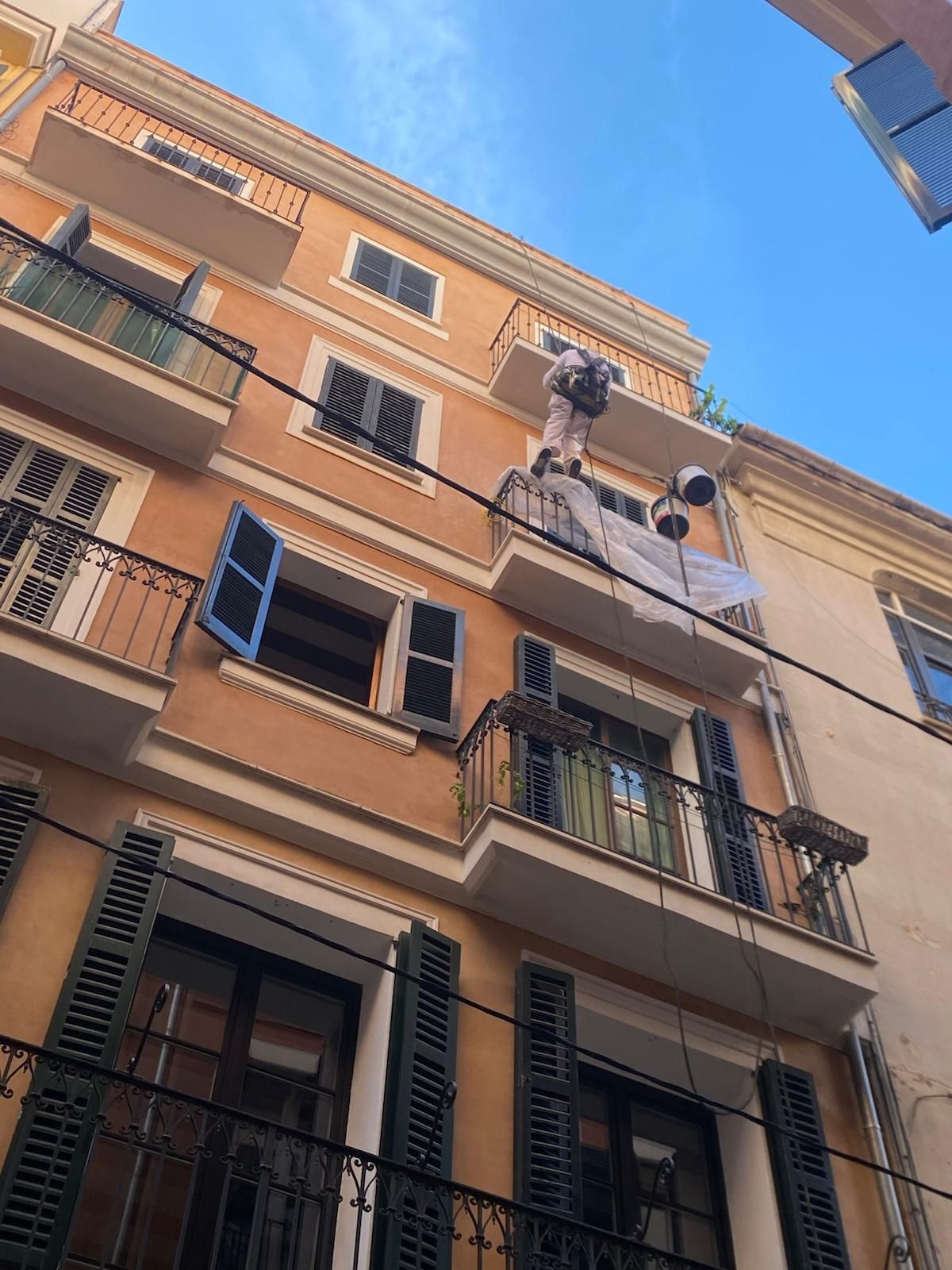 Trabajos verticales. Trabajos en Altura. Rehabilitación y restauración de Fachadas. Rehabilitación de patios de luces. Reparación de pilares. Impermeabilizaciones. Alquiler de Andamios en Palma de Mallorca.
